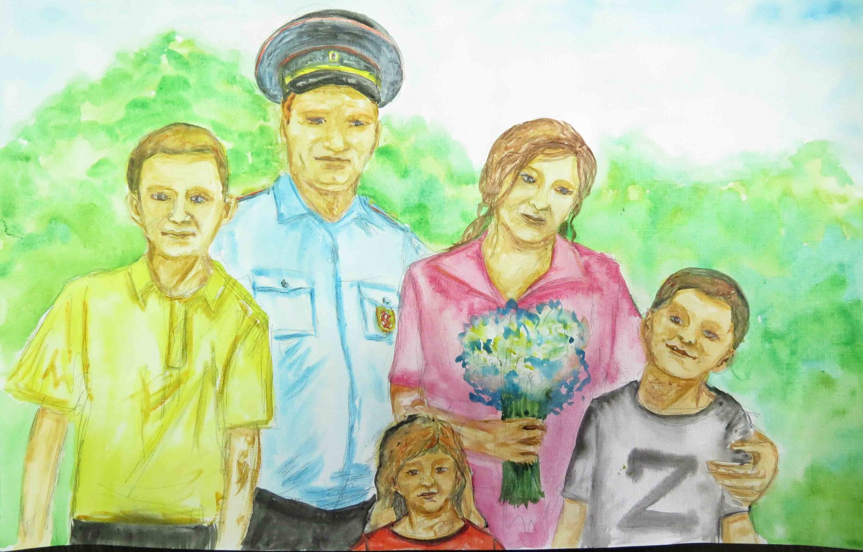 На конкурс в текущем году было представлено 26 работ, на которых юные дарования изобразили портреты своих мам и пап - сотрудников межмуниципального отдела полиции, семейные портреты, показали, как они видят будни сотрудников органов внутренних дел.