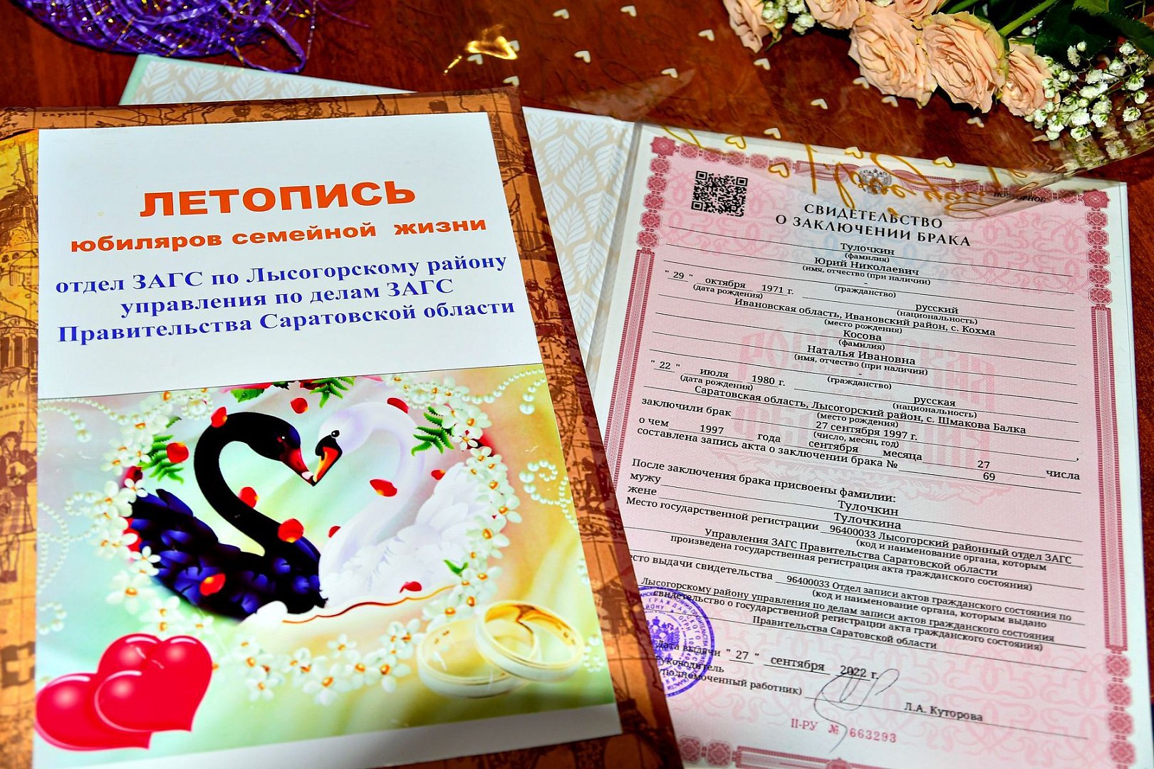 В Лысогорском отделе ЗАГС поздравили юбиляров семейной жизни Тулочкиных