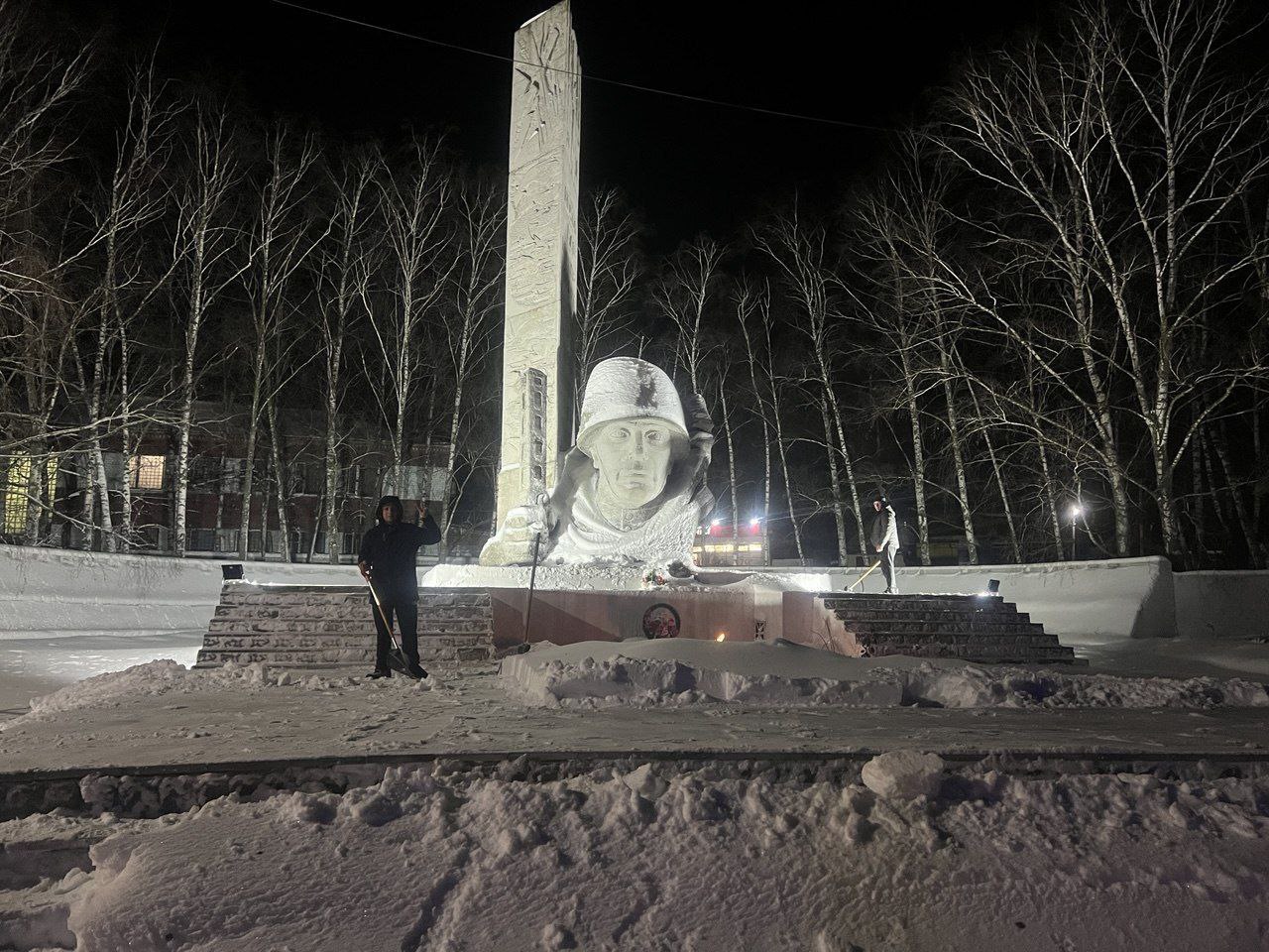 Неравнодушные жители участвовали в расчистке памятника на центральной площади поселка.