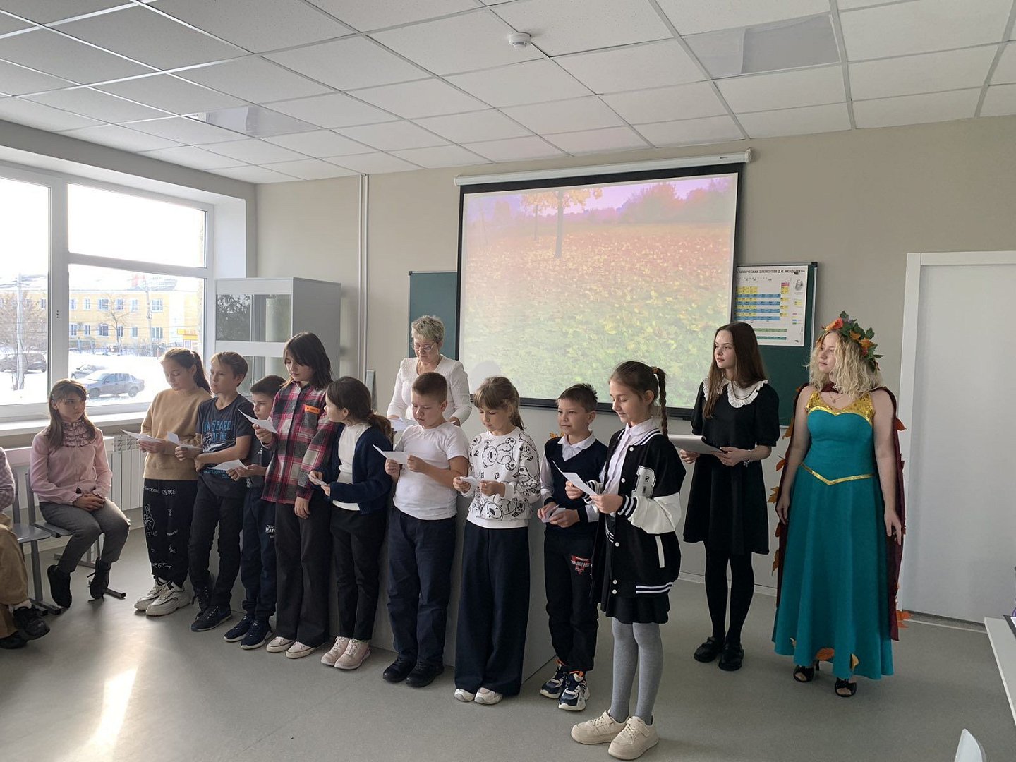 Обучающиеся 4 классов приняли активное участие в экологическом празднике Осени (учитель Е.Н. Ерохина), на котором читали стихи, играли в игры, отгадывали загадки, узнали о осенних явлениях в живой и неживой природе, о перелетных и зимующих птицах. Ведущая Александра (Круглякова) и Осень (Анна Пименова) замечательно провели данное мероприятие и исполнили свои роли.