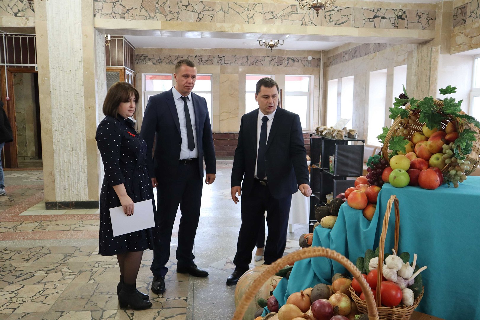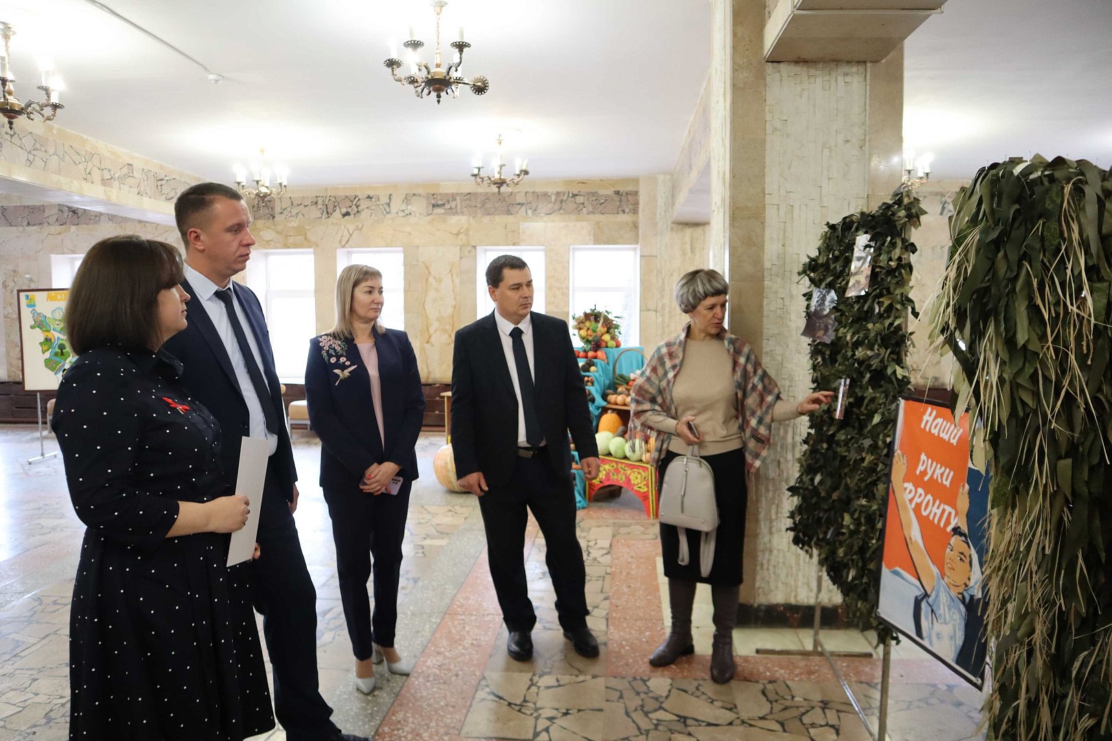 В фойе была организована выставка сельхозпродукции, а также волонтерский центр «Наши руки фронту» представил свою работу. Для начальника управления экономической политики министерства сельского хозяйства Саратовской области В.А. Зориной и главы Лысогорского района С.В. Фартукова экскурсионный обзор провел начальник управления сельского хозяйства администрации МР С.Ю. Козлов.