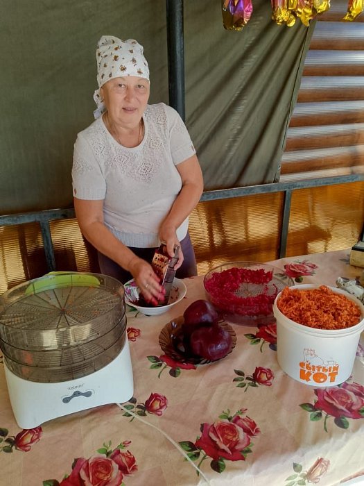 Жители нашего района охотно делятся с общественницами своим урожаем картошки, кабачков, тыквы, моркови. Ну а наши «Пчелки» в процессе своей работы занимаются подготовкой овощей к сушке, моют, чистят, проводят их термическую обработку, нарезают и укладывают на сушку в сушилки. Для массового производства сухих ингредиентов были приобретены не только сушилки, но и дегидраторы, которые позволяют достаточно быстро и качественно высушить овощи. Из овощей сушат морковь, картофель, капусту, лук, свеклу, зелень, огурцы.