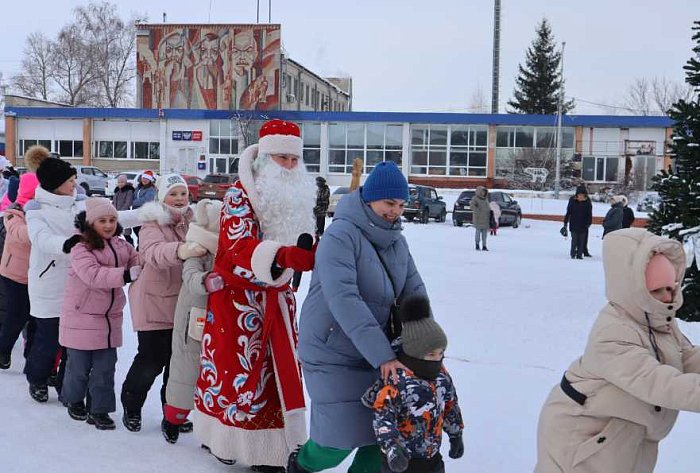 Коллектив районного Дворца культуры увлёк маленьких лысогорцев развлекательной программой, танцами, играми и хороводом. Румяный Дед Мороз, красавица Снегурочка и их помощники сделали встречу весёлой и незабываемой!