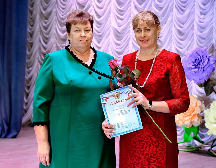В Лысогорском РДК сегодня прошло торжественное мероприятие, приуроченное к одному из самых уважаемых праздников в стране - Дню учителя. Со словами поздравления к присутствующим обратилась глава администрации Лысогорского МР В.А. Фимушкина. Валентина Александровна поблагодарила педагогов района за их труд и пожелала всем счастья, здоровья, успехов в профессиональной деятельности. К поздравлениям присоединились депутат Собрания Лысогорского МР Г.Е. Крымцев и председатель районной организации профсоюза работников образования и науки С.В. Леорда. Под дружные аплодисменты прошла церемония награждения почетными грамотами педагогов и ветеранов труда.