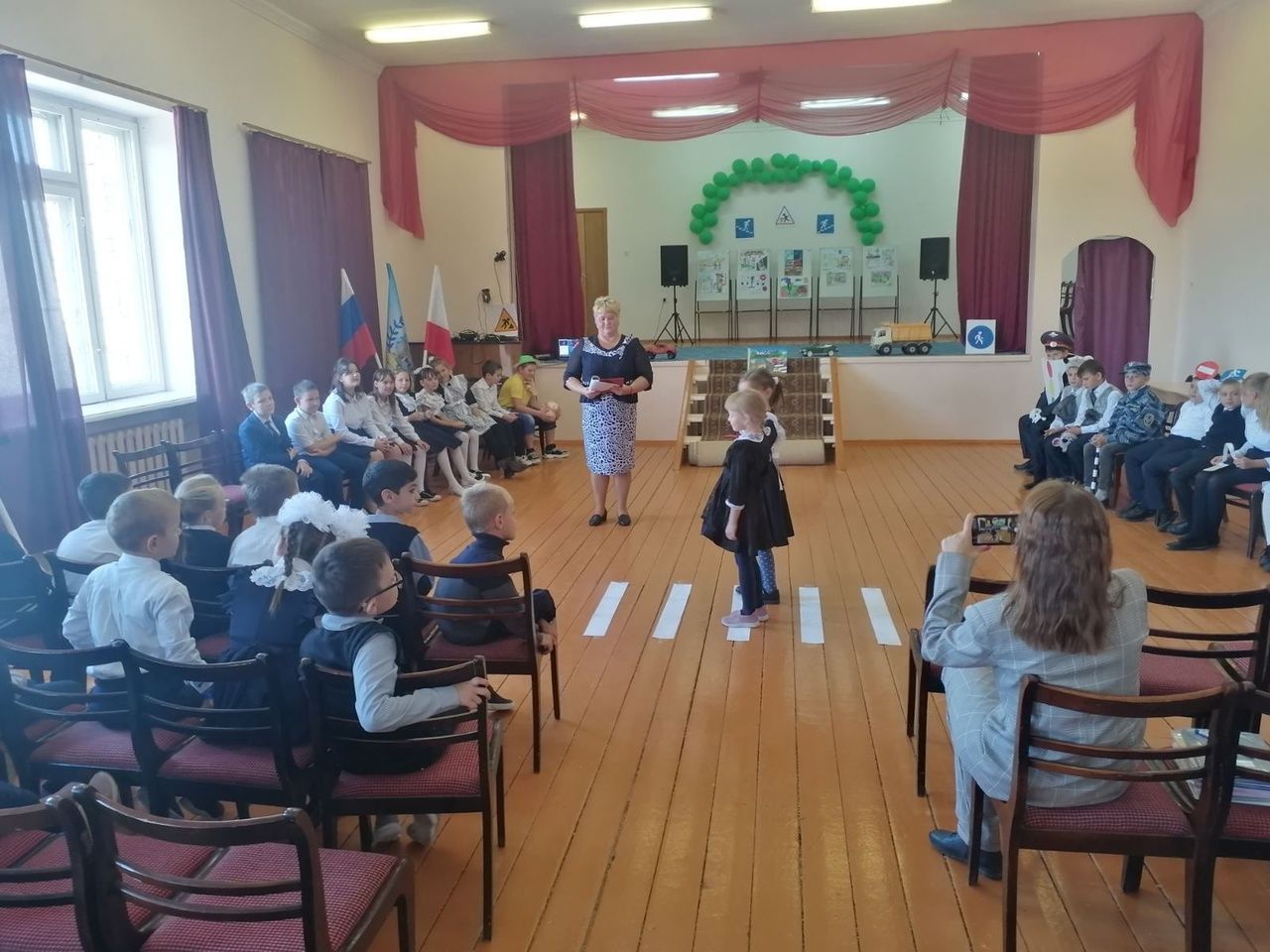В МБОУ СОШ №2 р.п. Лысые Горы в сентябре ежегодно проходит месячник «Внимание, дети!» В этом году, 22 сентября, 4 А класс (классный руководитель Струбалина О.С.) показал театрализованное представление «Дорожная азбука» для первых и пятых классов, где дети читали стихи о правилах дорожного движения, о дорожных знаках, пели песни. Но особенно запомнились Агитбригада школы (Маргарян Роберт, Акчурина Самира, Ахметшина Агния, Жидкова Лена). Ребята рассказали о дорожных знаках, о светофоре, о правилах перехода дорог и как вести себя на улице. Главные герои праздника: Кот Леопольд (Косицын Артём) и Мышата (Зайцев Роман и Дивейкин Дима), которые не знали ПДД. А подружкам –поскакушкам (Плешко Ангелина и Черняк Ксения) Инспектор (Власовец Захар) показал на практике, как вести себя на дороге и как правильно переходить дорогу. Строгий и серьезный Светофор (Егоров Иван) в игровой форме поведал о своих цветах. Инспектор провёл обучающее занятие с первоклассниками, которые на практике закрепили полученные знания. В конце праздника каждому классу раздали буклеты «Дорога безопасности» с основными правилами на дорогах.