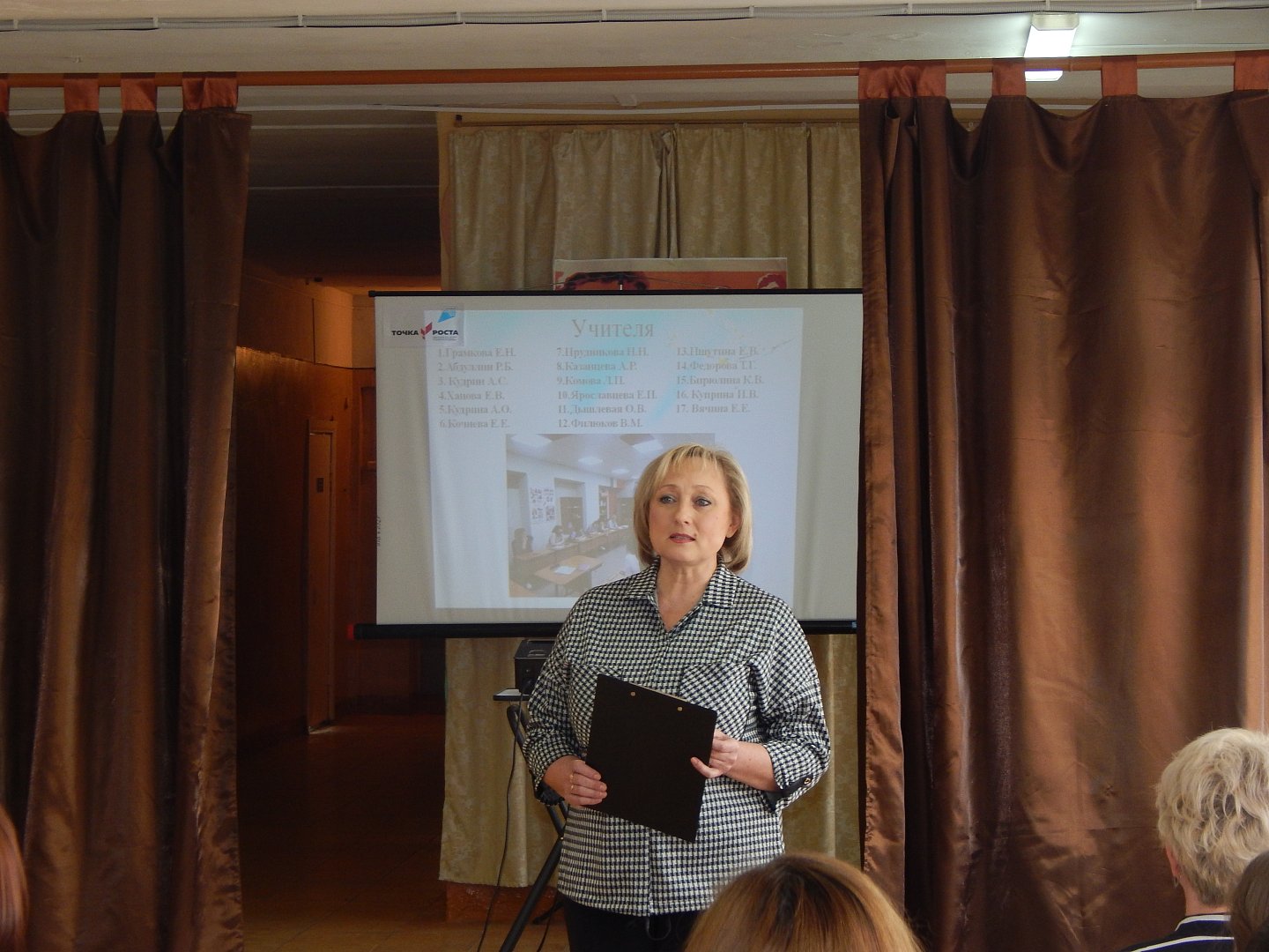 Семинар открыли гимном Российской Федерации. Далее гостей со всего района поприветствовала директор школы Е.Н. Грамкова. Рассказывая об учреждении, она подробнее остановилась на образовательном центре цифрового и гуманитарного профилей «Точка роста», который открыли в 2019 году.