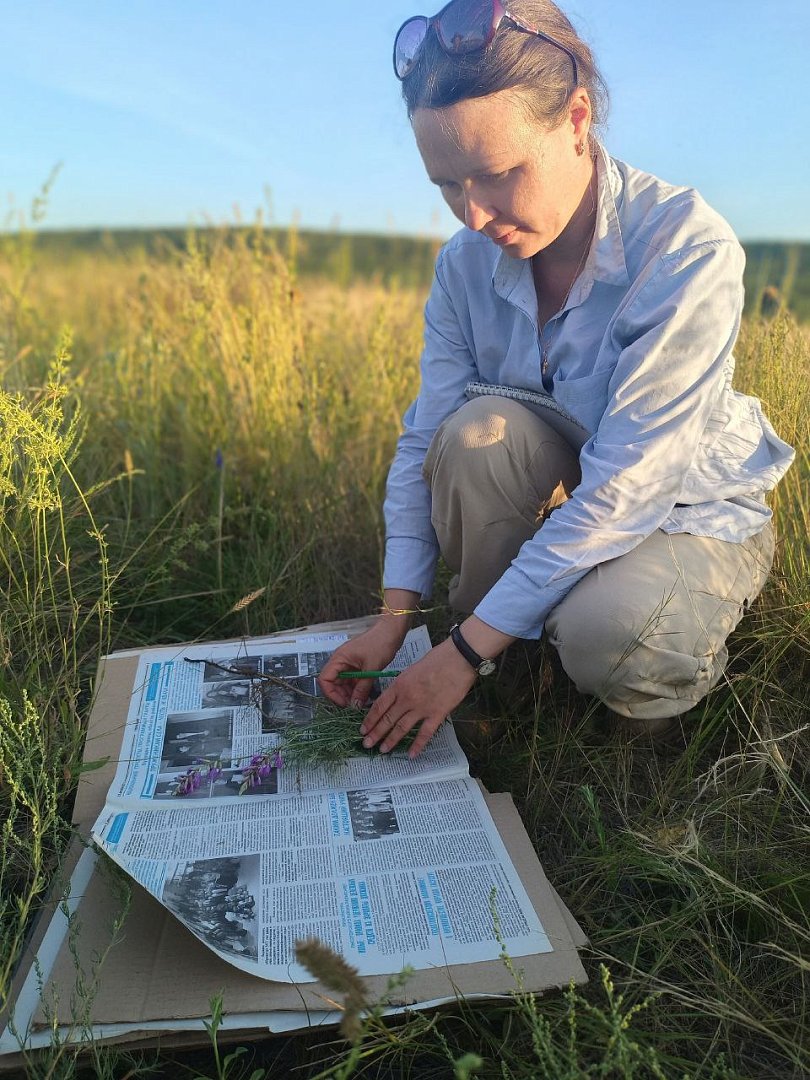 А параллельно работе на площадке Алиса Стрельникова аккуратно собрала образцы интересных видов растений для последующего изучения и пополнения коллекций гербария СГУ.