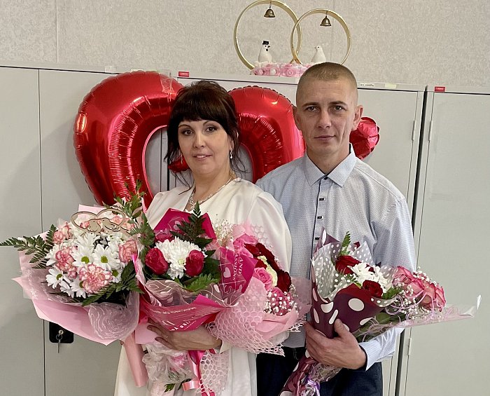 Начальник отдела ЗАГС Людмила Куторова вручила новорождённой российской семье свидетельство о заключении брака и пожелала молодожёнам благополучия и процветания.