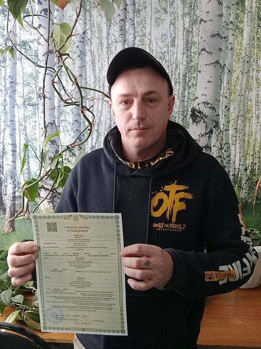 Начальник отдела ЗАГС по Лысогорскому району Людмила Куторова поздравила родителей с рождением сына, вручила им самый первый документ ребенка - свидетельство о рождении, и пожелала малышу и семье здоровья и семейного благополучия.