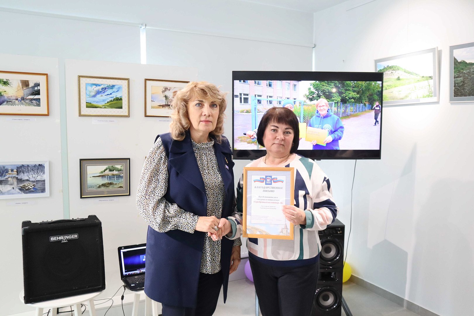Ирина Евгеньевна вручила благодарственное письмо представителям «серебряных» волонтеров Лысогорского района.