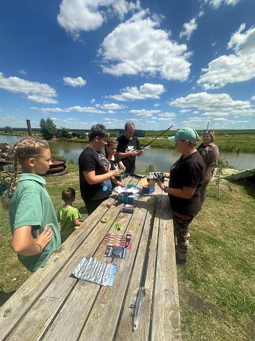 Следующий этап стал настоящим творческим испытанием: каждая семья создала собственные удочки из простых природных материалов. Это задание превратилось в настоящее семейное творчество, где каждый член команды внёс свою лепту — от выбора подходящей ветки до привязывания лески и крючка.