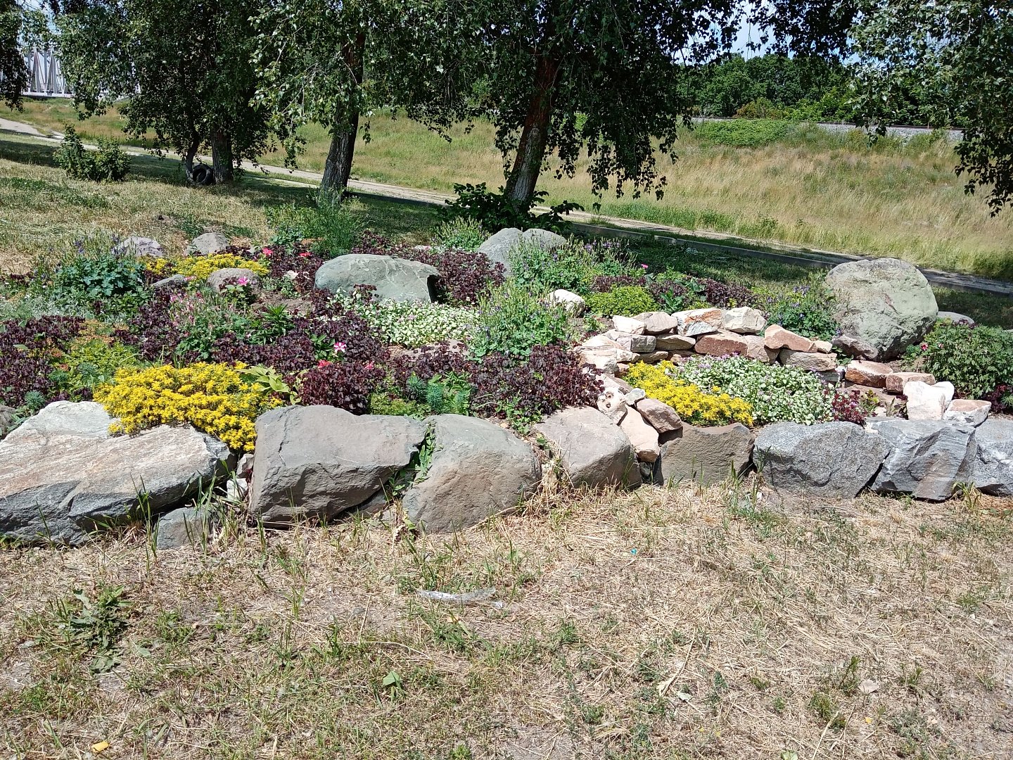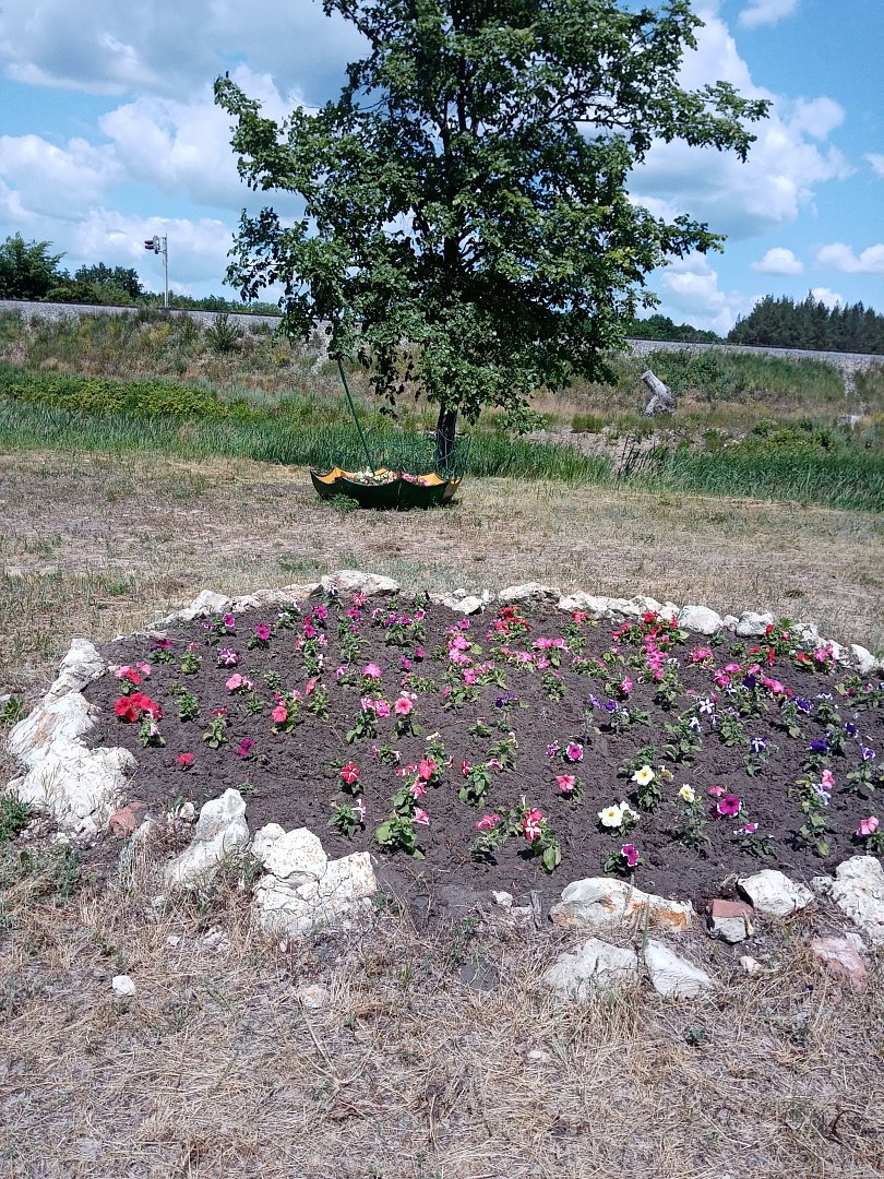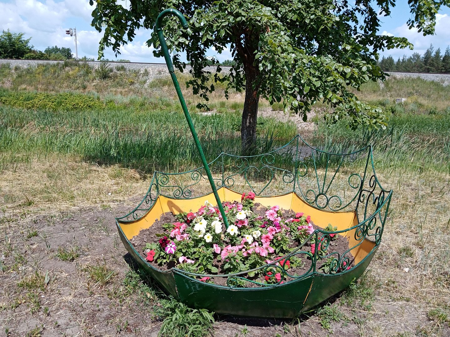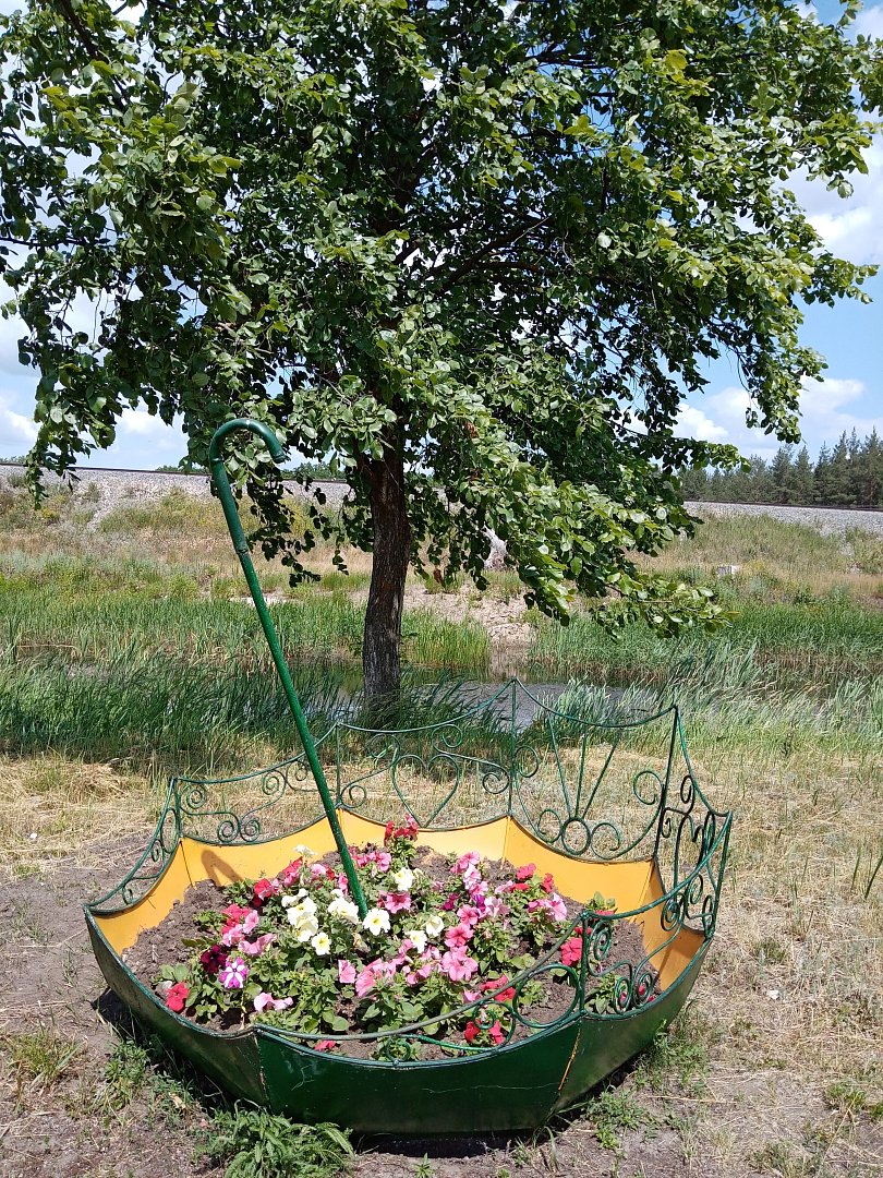 К Дню поселка планируется завершить работы по укладке тротуарной плитки, установке дополнительных скамеек. Появляются все новые и новые артобъекты. Хорошо вписались в ландшафт два декоративных зонта, в которых яркими красками радуют цветущие петунии.