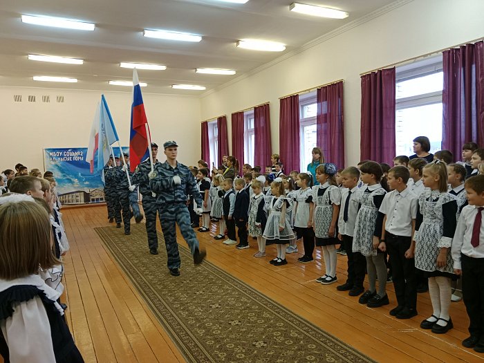 Мероприятие началось с торжественного внесения флагов. Далее ребята дружно исполнили Гимн Российской Федерации.