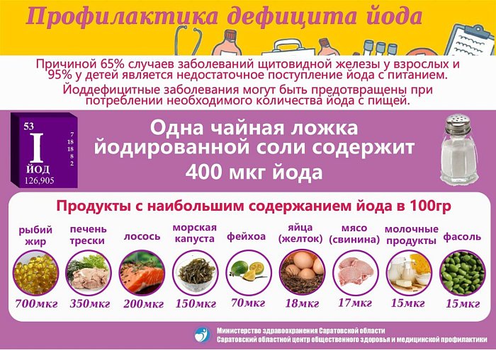 Ежегодно 25 мая отмечается Всемирный день щитовидной железы. Различными заболеваниями «щитовидки» страдает не менее 1/3 населения Земного шара. Гормоны щитовидной железы влияют на обмен веществ, работу сердечно-сосудистой системы, умственное и физическое развитие, состояние костной ткани. В 90% случаев заболевания щитовидной железы связаны с нехваткой йода. В России более 60% территорий находится в зоне природной йодной недостаточности.