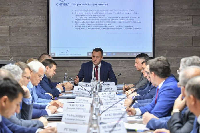 Для оснащения востребованными специалистами предприятий глава региона предложил для студентов-старшекурсников составить отдельный учебный план и закрепить подготовленных выпускников за конкретными рабочими местами, а также заняться переобучением действующих сотрудников.
