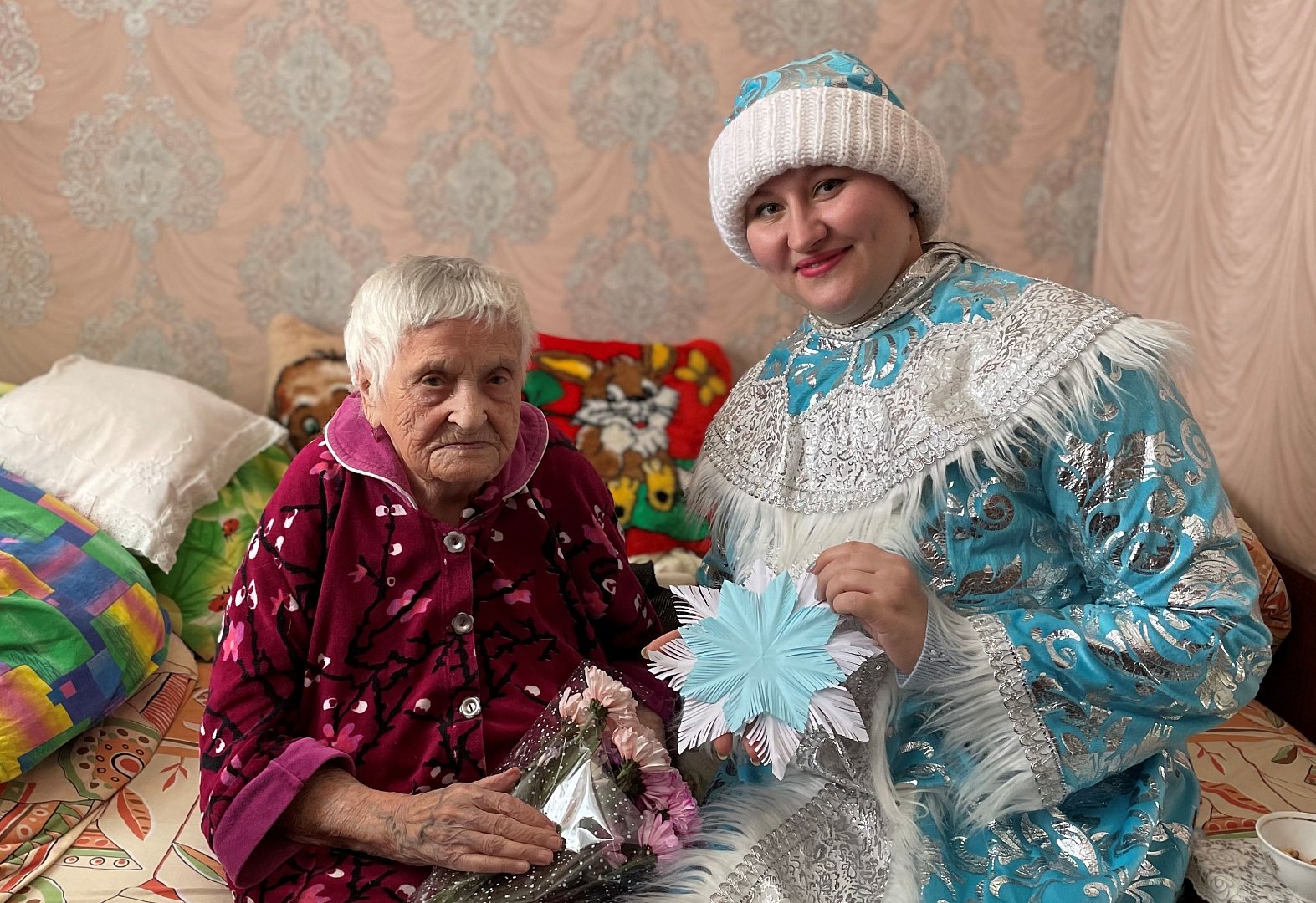 С наступающим Новым Годом и Рождеством всю большую семью именинницы поздравила Снегурочка, заведующая Бахметьевской библиотекой Ольга Янюшкина.