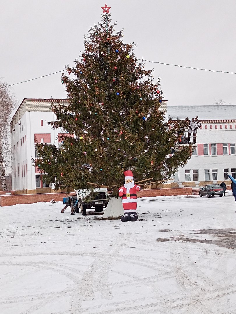 Сотрудники МУП "СанСервис" в течение всей недели занимались красочным оформлением площади 50 лет Октября в Лысых Горах к Новому году. Украшали деревья, подключили иллюминацию, поставили елку. Сегодня повесили игрушки, установили фигурки Деда Мороза. Так, что все готово, чтобы сделать селфи на память.-