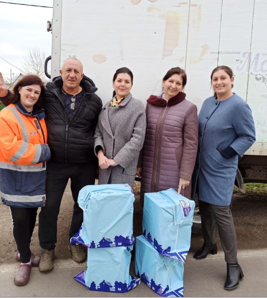 На снимке: сотрудники районной библиотеки передают собранную гуманитарную помощь С.П. Матийчуку.